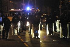 police advance in Oldham during the May 28 riots there