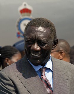Ghanaian President John Kufuor at the Nnamdi Azikiwe International Airport in Abuja, Nigeria on Nov. 29, 2006. (Photo: Pius Utomi Ekpei / AFP-Getty Images) |