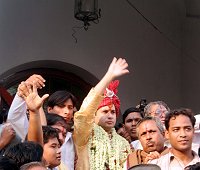 Pradyut Kishore Manikya Bahadur waves at crowd after his coronation. (Photo: Bapi Roy Choudhury) |