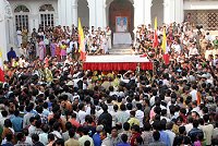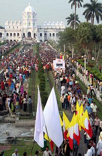 Thousands of mourners throng in front of the Ujjayanta Palace in Agartala. (Photo: Bapi Roy Choudhury) |