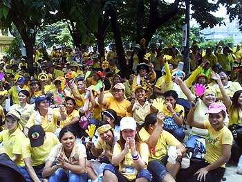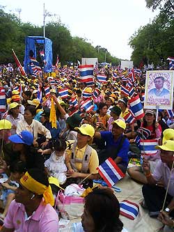 A retired teacher, Arom is among over 10,000 supporters of the People's Alliance for Democracy (PAD) who invaded and occupied the lawn of Government House on Aug. 26. It is the first time in recent years that a large crowd has managed to get onto the Government House grounds.