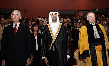 French Education Minister Gilles de Robien (left) attended a ceremony in Abu Dhabi last month to inaugurate the Persian Gulf campus of the prestigious Paris-Sorbonne University. While there, de Robien announced that a group of French experts would arrive shortly to study the possibility of opening a branch of the Louvre museum. (Photo: STR / AFP-Getty Images) |