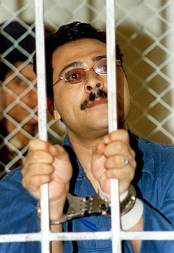 Al-Khaiwani during an appeals court session in Sanaa in 2005, having been jailed in 2004. (Photo: - / AFP-Getty Images) |