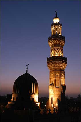 The dome and minaret of Umm Sultan Shabaan Mosque and Madrasa. The minaret, which had previously collapsed in an earthquake, was reconstructed by the Aga Khan Cultural Trust. (Photo: Courtesy of the A.K.T.C.) |